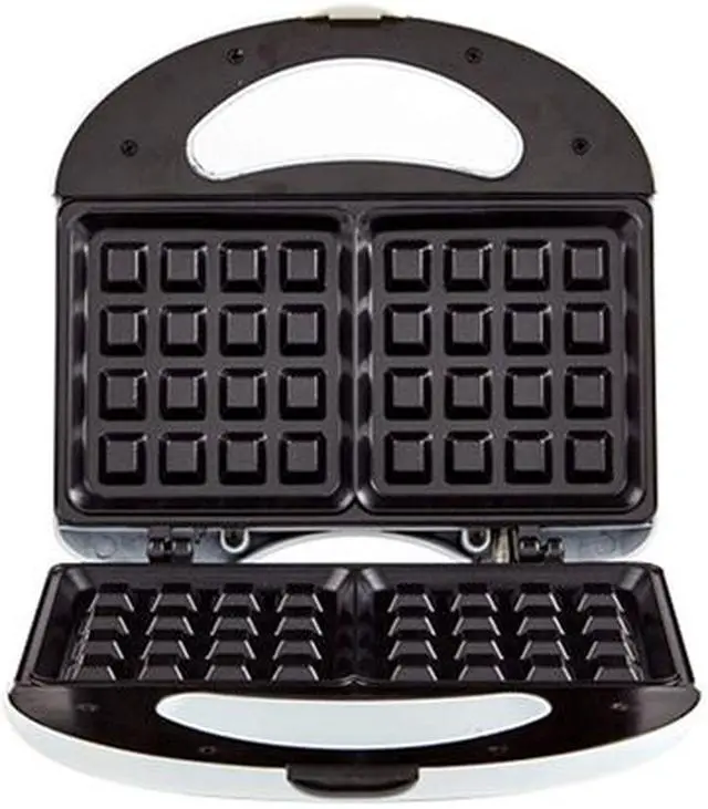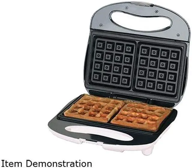 | Features | Simply pour batter into the sections, close the lid, and in a few minutes you have delicious waffles that can easily be removed from the non-stick plates Indicator lights will let you know when your food creation is ready. Cool touch handles will keep you safe from the heat. To clean, simply wipe with a damp cloth and dry when grill is cool. |