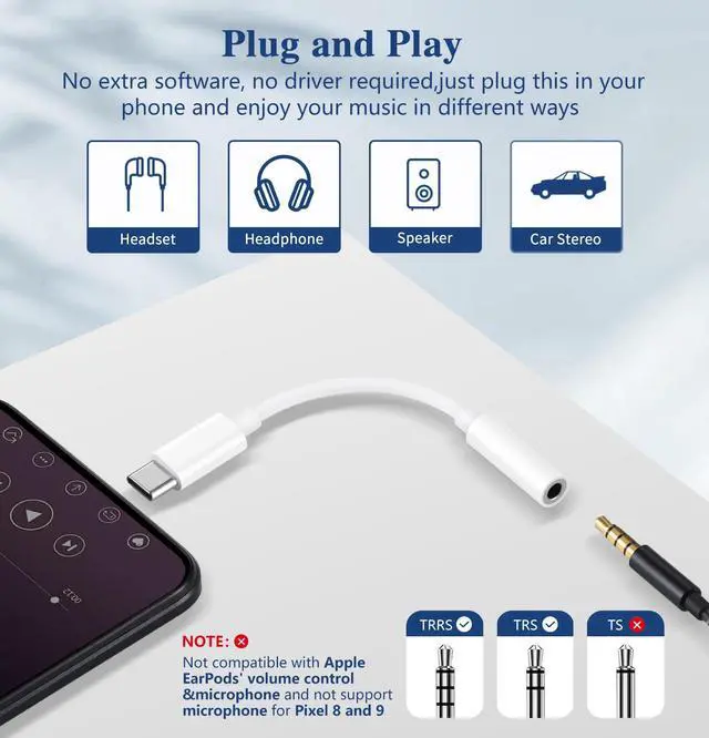 With true plug and play operation, there's no need to download apps or install drivers. Whether you're connecting to your phone or tablet, this usbc to 3.5 adapter gets to work instantly.