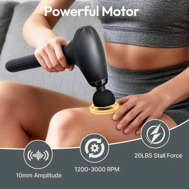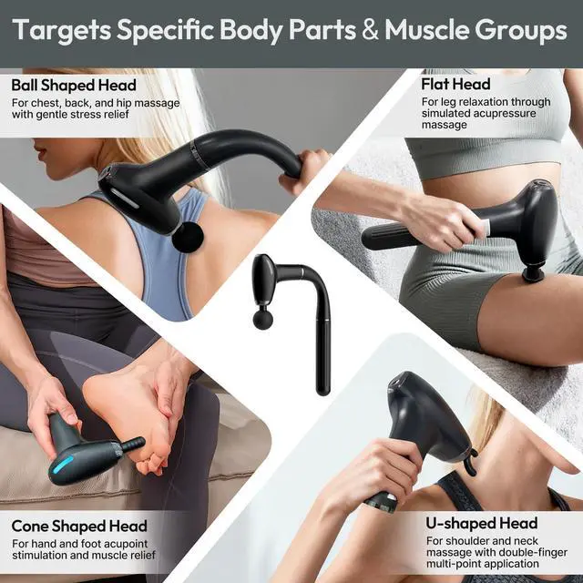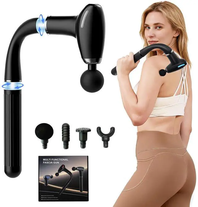 Designed with three interchangeable handles long, medium, and short this device easily adapts to different body areas, from hard-to-reach back muscles to arms and legs. With a powerful brushless motor delivering up to 3000 RPM, it provides deep tissue relief that helps reduce soreness, tension, and stiffness after workouts or long workdays. The flexible, user-friendly design delivers targeted muscle relief exactly where you need it.The ergonomic design with a push-and-twist handle system makes assembly effortless and stable. Equipped with 4 interchangeable massage heads and 4 adjustable speed levels 12003000 RPM, this backl massager gun offers personalized therapy for every muscle group A long-lasting rechargeable battery provides up to 5-7 hours of continuous use, so you can enjoy deep relaxation without frequent charging interruptions. Its quiet operation under 45dB ensures a peaceful massage experience, whether youre watching TV, working, or relaxing before bed. Its portable design makes it the perfect relief companion post-workout, during travel, or in daily life.