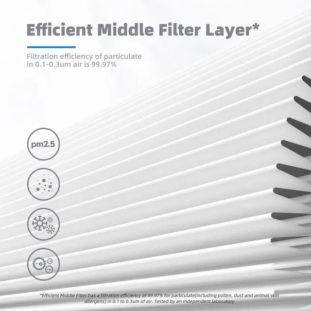 Prevent Clogging: When hairs, dander, and other large particles meet the pre-filter layer, they will be blocked outside to prevent the air purifier from clogging.