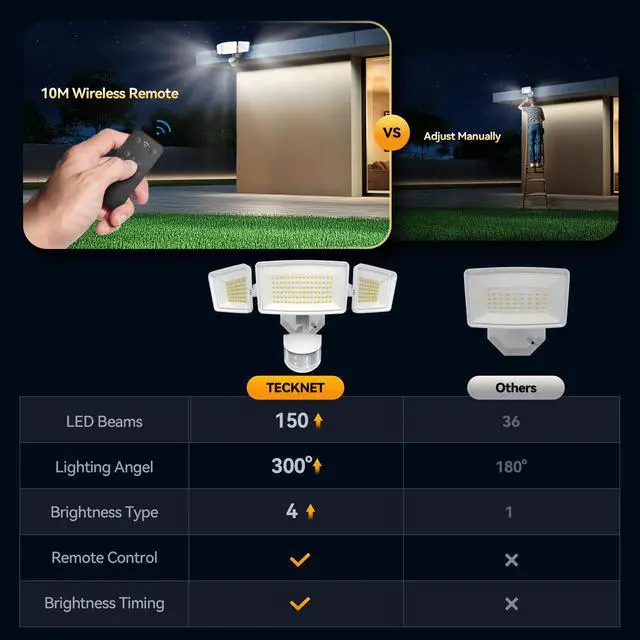 TECKNET Flood Lights Ourtdoor Motion Sensor,