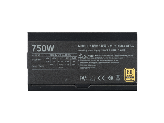 Cooler Master MWE Gold 750 V3 ATX 3.1 Full Modular PSU, 750W, 80+ Gold Efficiency, 90° 12VHPWR|450W PCIe 5.1, Japanese Capacitors, Zero-RPM Mode, Hexagonal Fan Cover, 10-Year