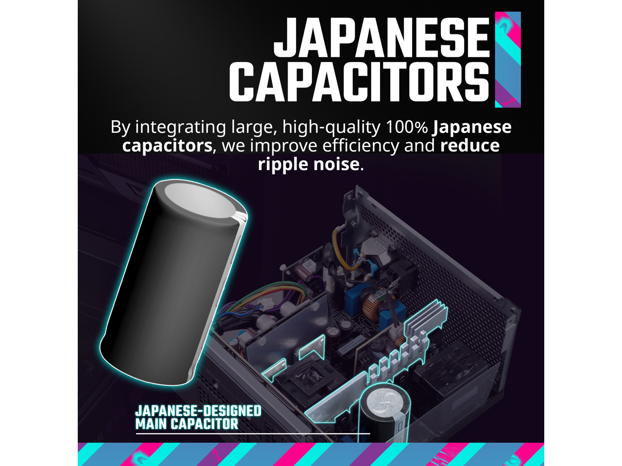 - Japanese Capacitors: By integrating large, high-quality 100% Japanese capacitors, we improve efficiency and reduce ripple noise.