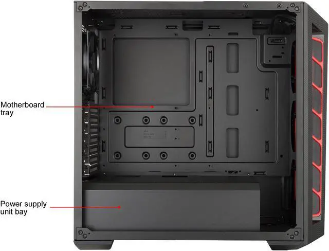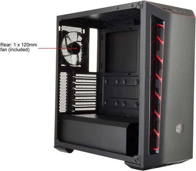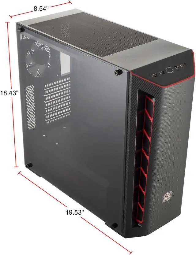 | Features | Carbon texture - Racing and motorsports act as an inspiration for the carbon texture design. Performance Intake - Large intakes on each side of the front panel pay tribute to high performance cars. Trim Color - Choose between red, white, or blue trim to compliment the intakes. Support for a total of 6 fans & water cooling - Six 120mm fans and front and rear water cooling support ensure that you don't have to compromise on performance. Graphics card support up to 400mm - You won't ever have to worry about the fit of your graphics card, with support for even the largest, widest cards. Edge to Edge Transparent Side Panel - Showcase your build through the transparent side panel. |