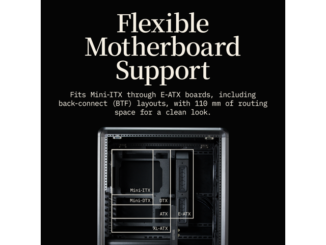 - Flexible Motherboard Support: Compatible with Mini-ITX to E-ATX (up to 305 x 330mm) to accommodate a wide range of system builds.