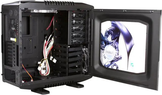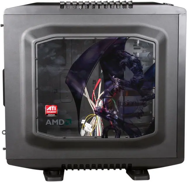 | Features | Fierce exterior design inspired by military weapons. Menacing all blank coating with aggressive AMD-red LEI) fans Unique side panel window with AMD Dragon graphics. Unprecedented airflow from 2 huge fans. Next generation control center for tuning your lights and fans StormGuard - groundbreaking security system for safeguarding your gaming peripherals. Convenient handle and foot stand for fast and efficient mobilization and relocation. |