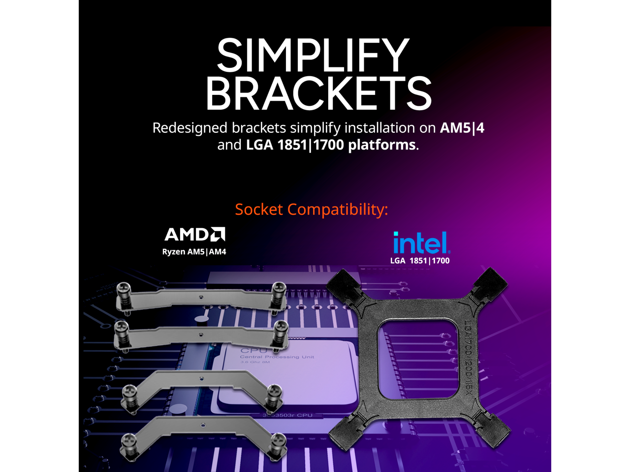 - Frosted Blade Design: The frosted blade enhances the dispersion of aRGB Simplified Brackets: Redesigned brackets simplify installation on AM5 and LGA 1851|1700 platforms.