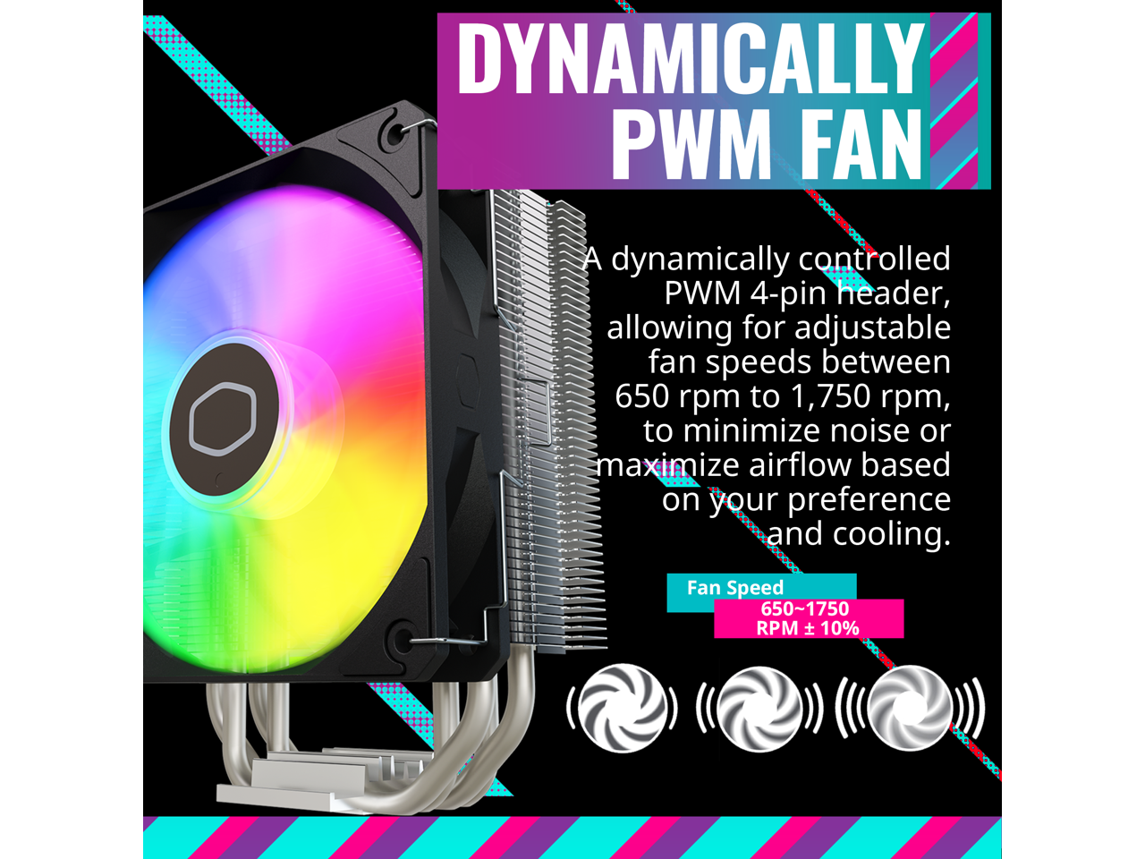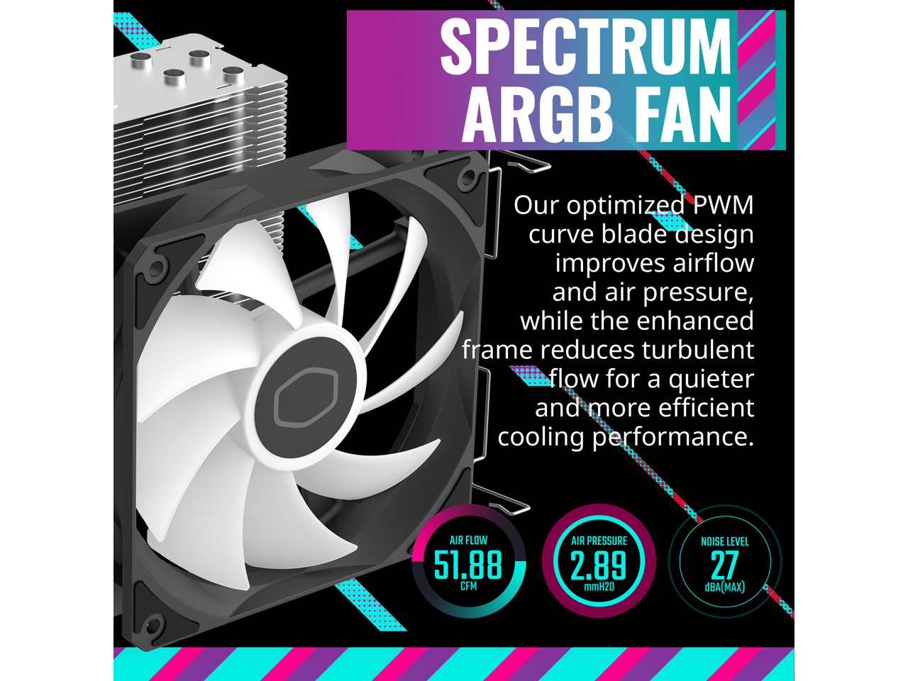 Cooler Master Hyper 212 Spectrum V3 CPU Air Cooler, ARGB Sync, 120mm PWM Fan, 4 Copper Direct Contact Heat Pipes, 152mm Tall, Brackets AMD Ryzen AM5/AM4, Intel LGA 1851/1700/1200 (RR-S4NA-17PA-R1)