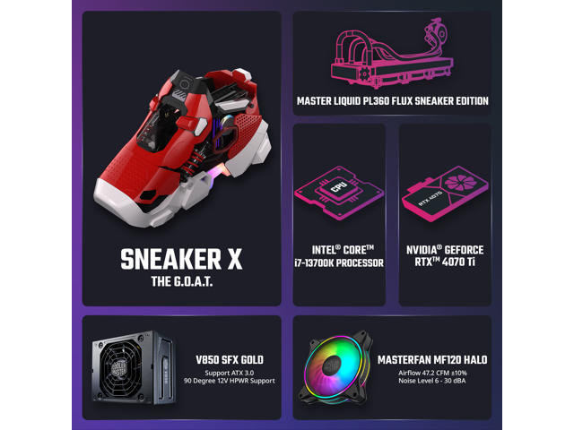 Cooler Master Sneaker-X ITX | AIO | Power | PC Case, 360mm Flux AIO, V850W SFX Gold PSU, 300mm GPU Mount Compatible Gigabyte RTX 5070 Ti Eagle |RX 9070 XT Gaming OC, DIY Customize Build