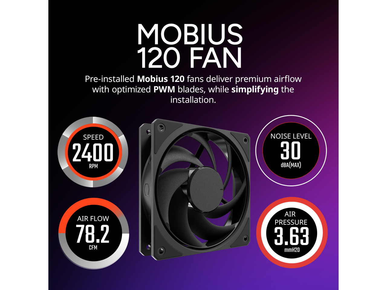 Cooler Master 240 Atmos Stealth High Performance Close-Loop AIO Liquid Cooler, R9|i7 Dual Chamber Pump, Customize Cover, Mobius 120, AMD Ryzen AM5|4, Intel LGA 1851|1700 Platform