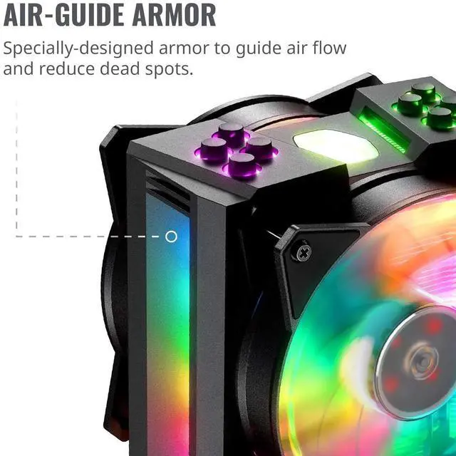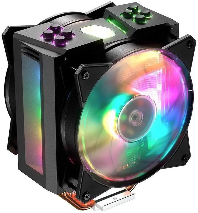 Cooler Master MasterAir MA410M Addressable RGB CPU Air Cooler w/ Independently LEDs, 4 Continuous Direct Contact 2.0 Heatpipes, Aluminum Fins, Push-Pull, Dual MF120R 120mm Fans, AMD Ryzen/Intel1151