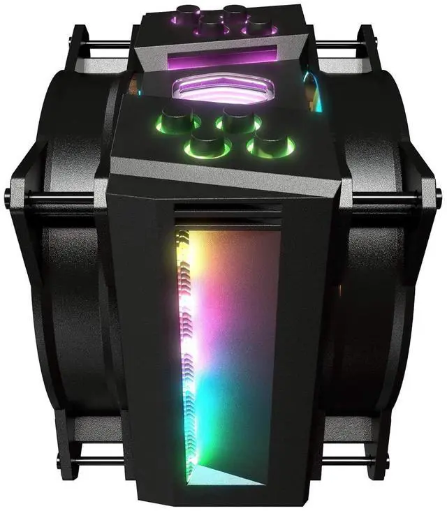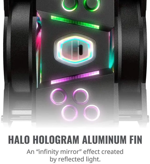 1. Hexagon hologram aluminum fin specialized hologram cutout for unique color lighting and excellent heat dissipation; Air flow: 53.38 CFM; Noise level:31.0 decibels