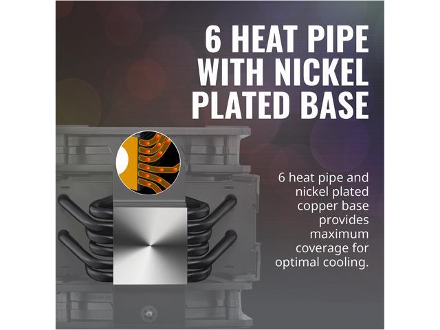 - 6 Heat Pipe with Nickel Plated Base: 6 heat pipe and nickel plated copper base provides maximum coverage for optimal cooling.