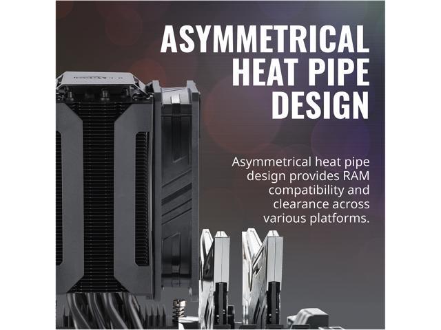 - Asymmetrical Heat Pipe Design: Asymmetrical heat pipe design provides RAM compatibility and clearance across various platforms.