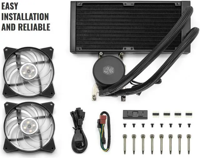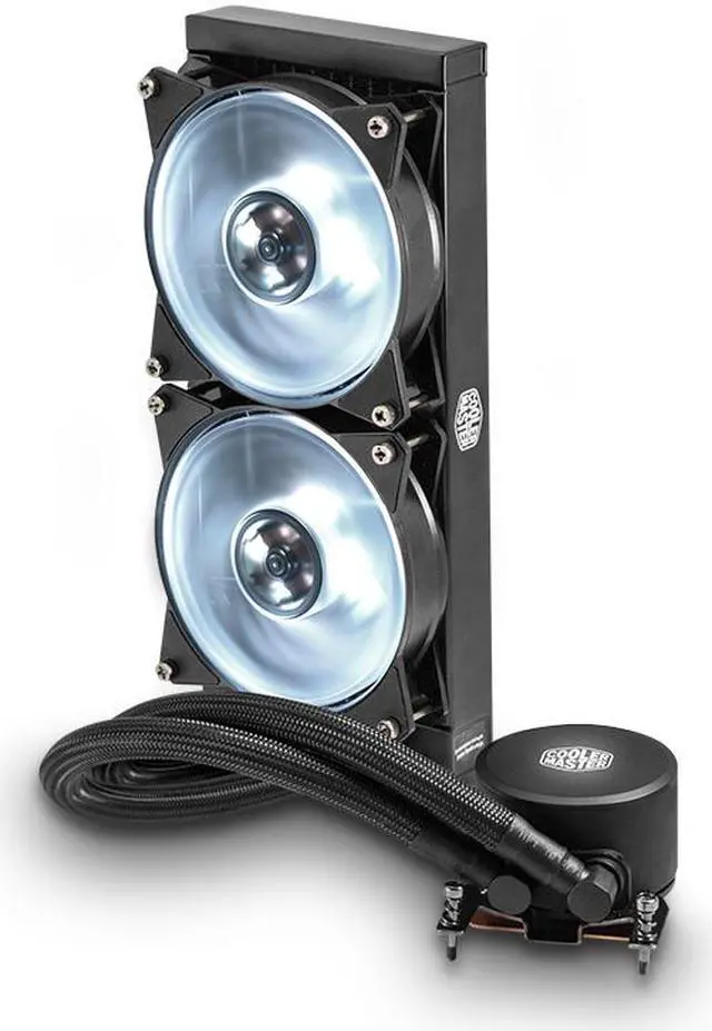 The MasterLiquid ML240 RGB TR4 Edition all-in-one liquid CPU cooler is custom, inside and out. Exclusive for AMD Ryzen TR4 socket which features a larger contact surface area that is specifically tailored for Thread ripper processors. Our low-profile dual chamber pump outperforms its single chamber predecessors in heat transfer. RGB LEDs are installed on both the pump and fans for full color customization that can be controlled through the provided controller. Kink-free, factory-sealed FEP tubing now comes sleeved for a premium look. Screw it in and experience the quiet muscle of liquid cooling without ever worrying about refills or maintenance. Enjoy the work of decades of thermal innovation.