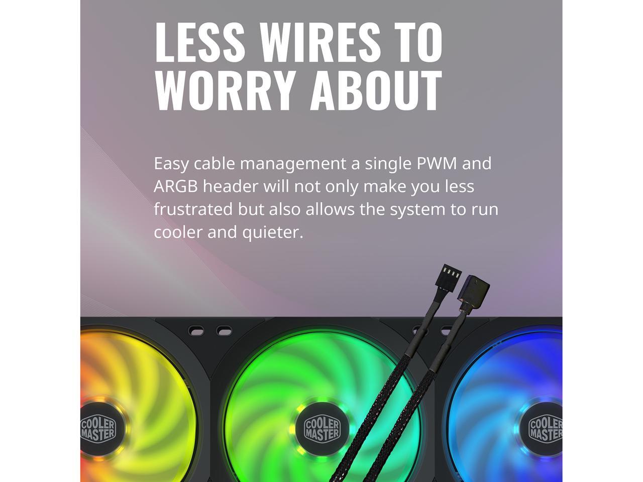 Cable Management: Three in One fan combination trims power and ARGB connections to two