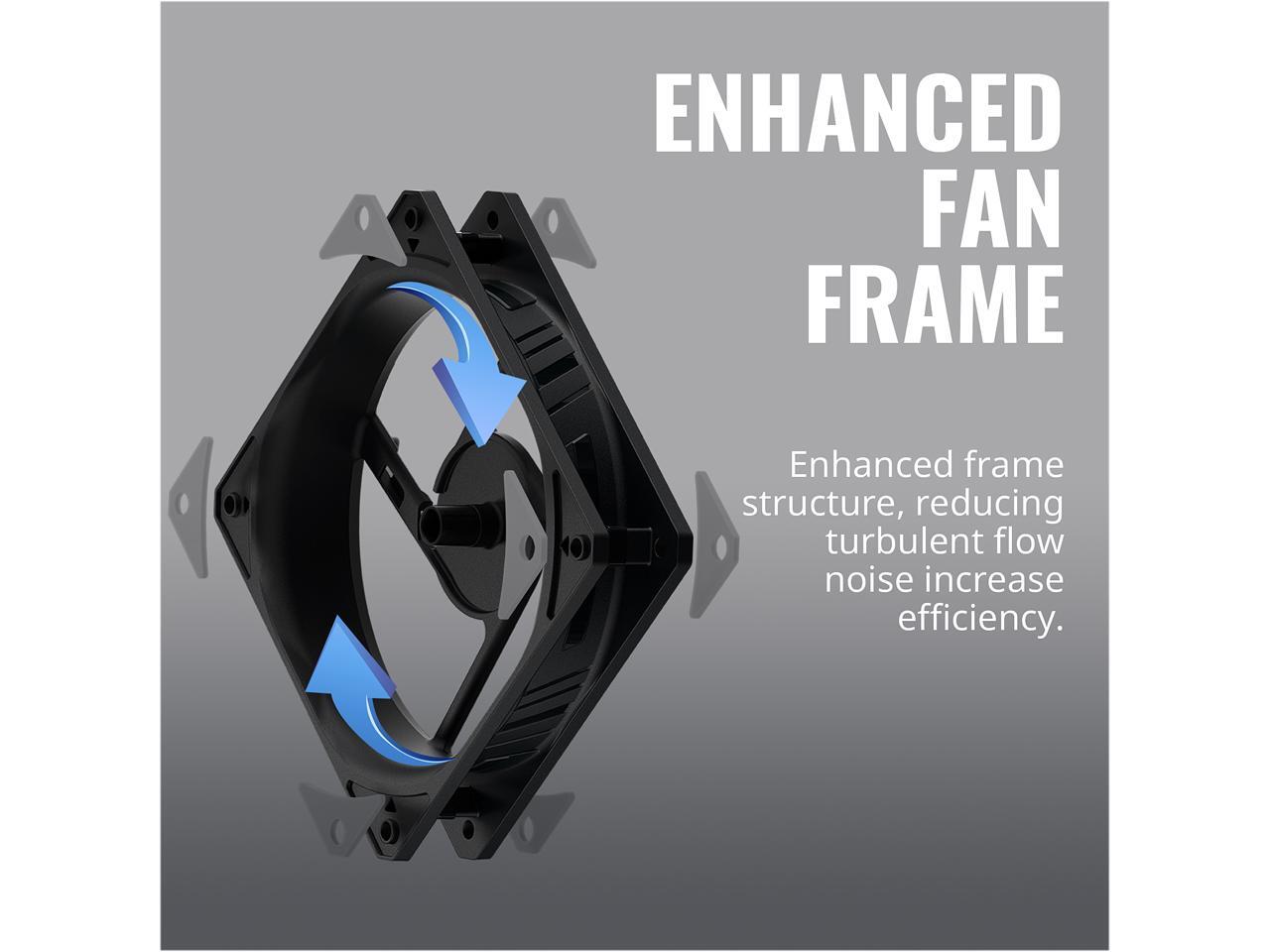 - Enhanced Fan Frame: Enhanced frame structure, reducing turbulent flow noise increase efficiency.