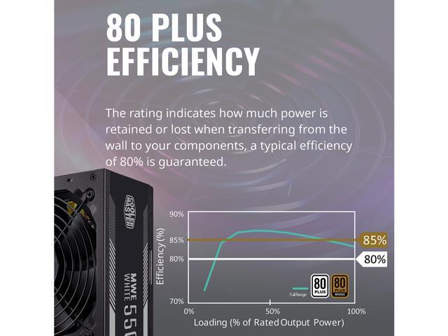 Cooler Master MWE 550 550W 80+ White PSU w/ Hydro-Dynamic-Bearing Silent 120mm Fan, Single +12V Rail, Flat Black Cables