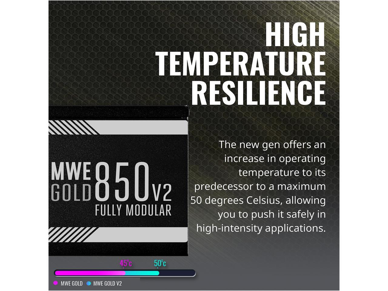 Cooler Master MWE Gold 850 V2 Fully Modular, 850W, 80+ Gold Efficiency, Quiet HDB Fan, 2 EPS Connectors, High Temperature Resilience, 5 Year Warranty