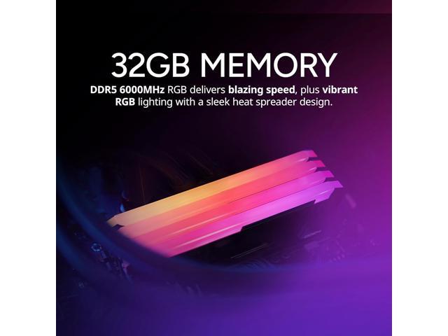 - SUPERIOR MEMORY: 2TB Gen4 M.2 SSD offers next-gen storage with a Gen 4x4 NVMe controller, delivering high-speed performance for apps, photos, media, and games | 32GB (2x16GB) DDR5 6000MHz RGB RAM w/ heatsink delivering blazing speed, plus vibrant RGB lighting