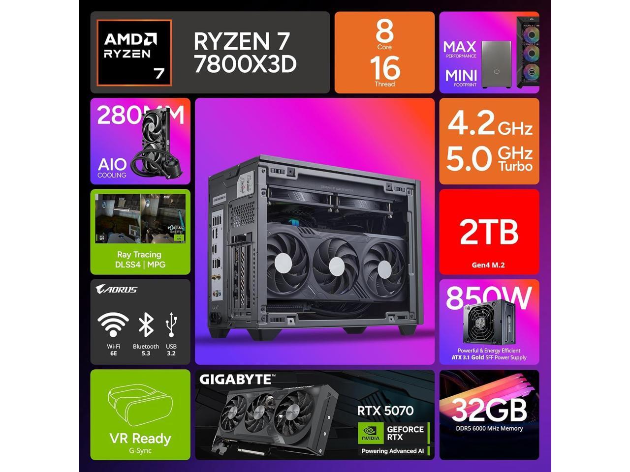 Cooler Master NR2 Pro Mini ITX - AMD RYZEN 7 7800X3D 4.2 GHz (5.0 GHz Turbo) | Gigabyte RTX 5070 12GB & B650I AORUS ULTRA | 32GB DDR5 6000MHz | 2TB Gen4 M.2 | WiFi | Windows 11 | 280mm AIO Gaming PC