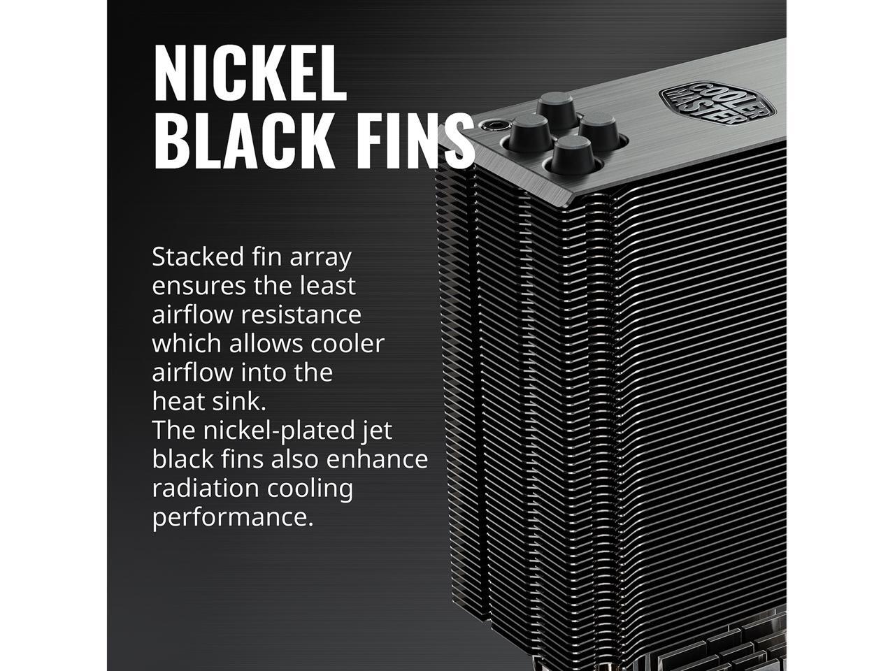 Cooler Master Hyper 212 RGB Black Edition CPU Air Cooler, SF120R RGB Fan, Anodized Gun-Metal Black, Brushed Nickel Fins, 4 Copper Direct Contact Heat Pipes for AMD Ryzen/Intel LGA1700/1200/1151