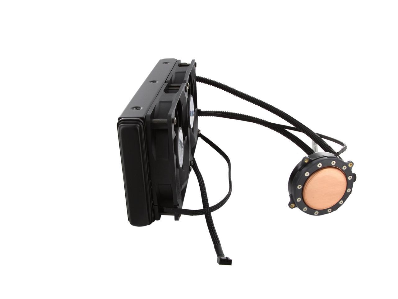 Pros: Performs way above expectations! My current setup was banging on ~60 degrees under load, 70+ degrees under load with some overclock. Now, I'm sitting at 47 degrees under load, and maybe 60-some degrees with the same overclock. CPU idles about 1-3 degrees above case temperature at best. My previous cooler wan an older Coolit ECO 120, basically the predecessor to all the Corsair AIO (all in one) 120mm units. It was great in it's day for my dual, quad, and even six core AMD CPUS, but the 8 core Vishera with overclock (voltage hog) was just too much to handle. Installation was a breeze on my system. I'm using the fans in a push configuration with the radiator mounted to the top of my Antec p280. Perfect fit, perfect setup. The instructions, oddly enough, aren't terrible. (FYI, some cases with dual 120mm have the fan spacing kinda funny. To verify this unit will fit, get two 120mm fans and place them right next to each other, touching, if all eight holes line up this will fit your case.) With PWM (pulse width modulation (4 pin)) fan control and target CPU temp set to 40 degrees on my motherboard the fans run ~600 rpm idle and ~1500-1800 under full load. Most fans are pretty quiet if relatively unobstructed and kept at or below 1200 rpms. (Keep in mind, they could ramp up to ~2400, but there is no need as the system dumps heat so well.) At 1500 rpms, around 50% PWM speed, fans are just a smidgen above audible, but not at all loud enough to be annoying in my opinion. It's hard to judge sound, but the best way I can explain it is to say when my central heat kicks on, it is louder than my computer. Some have questioned why Cooler Master included fans capable of 2400 rpm...because they are quite loud at those speeds, but I like the option just in case I want to goof around and really push some high voltage during a benchmark or two. At 2400 rpm, they are loud, but for stock or mild overclocks I doubt you will ever need them to run past 1400-1500 rpms. At that speed they are pretty tame. I set mine up with the pump's power drawing from my "system fan one" 3 pin header (and it set to 100% in BIOS). Then I used the two PWM fan to one PWM plug adapter (included with the unit) to plug the fans into my CPU's 4 pin fan header, as I have better control over the CPU fan speed on my system. I don't know what else to say, this thing works...well. I haven't gotten the opportunity to compare it against it's rival AIO water coolers...but I can't imagine them doing much (if any) better. This system is simple and effective. Provided your motherboard has half way decent PWM control on the CPU header, you simply don't need a USB interface along with more software to make it work.