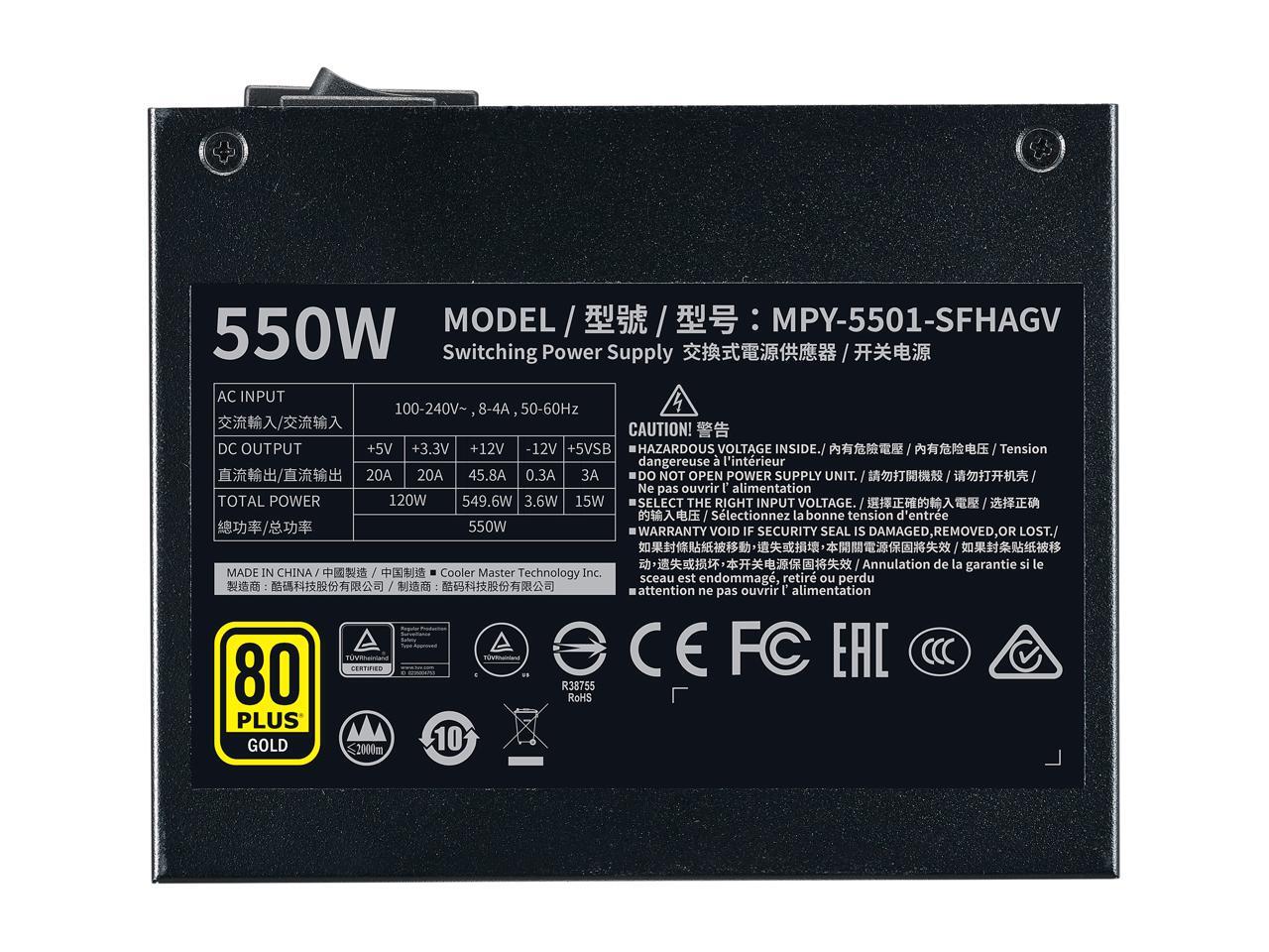 Cooler Master V550 SFX Gold Full Modular, 550W, 80+ Gold Efficiency, ATX Bracket Included, Quiet FDB Fan, SFX Form Factor, 10 Year Warranty