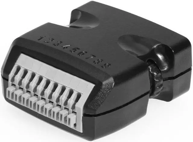 This TB-DB9TO9CAN DB9 female to screw-less 9-pin terminal block adapter provides a convenient and quick solution to convert a DB9 to a 9-pin terminal block for easy and fast writing in CAN Bus. This CAN terminator consists of a 120 Ohm termination resistor. All CAN networks need two terminators, one at each end of the network. The TB-DB9TO9CAN CAN Terminator can be used where the CAN cable or CAN note at the end does not internal termination.