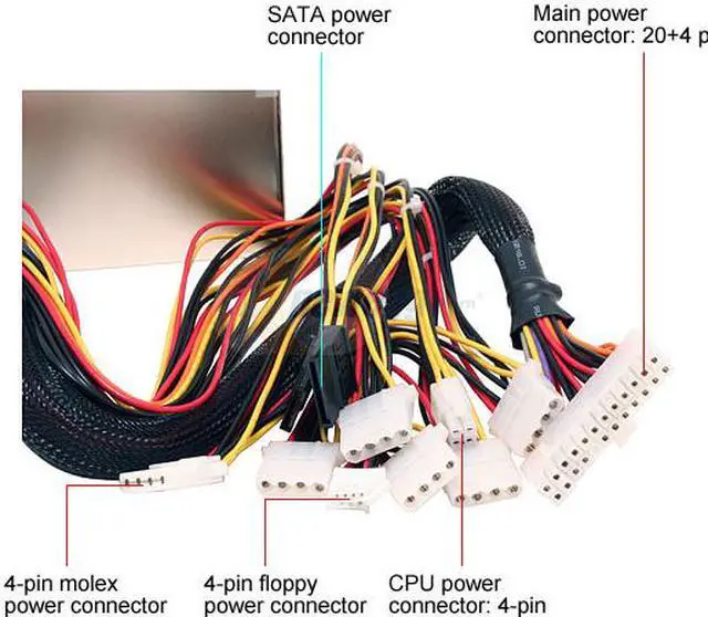 | Connectors | 1 x Main connector (20+4Pin) 1 x 12V (P4) 6 x peripheral 2 x SATA 1 x Floppy |