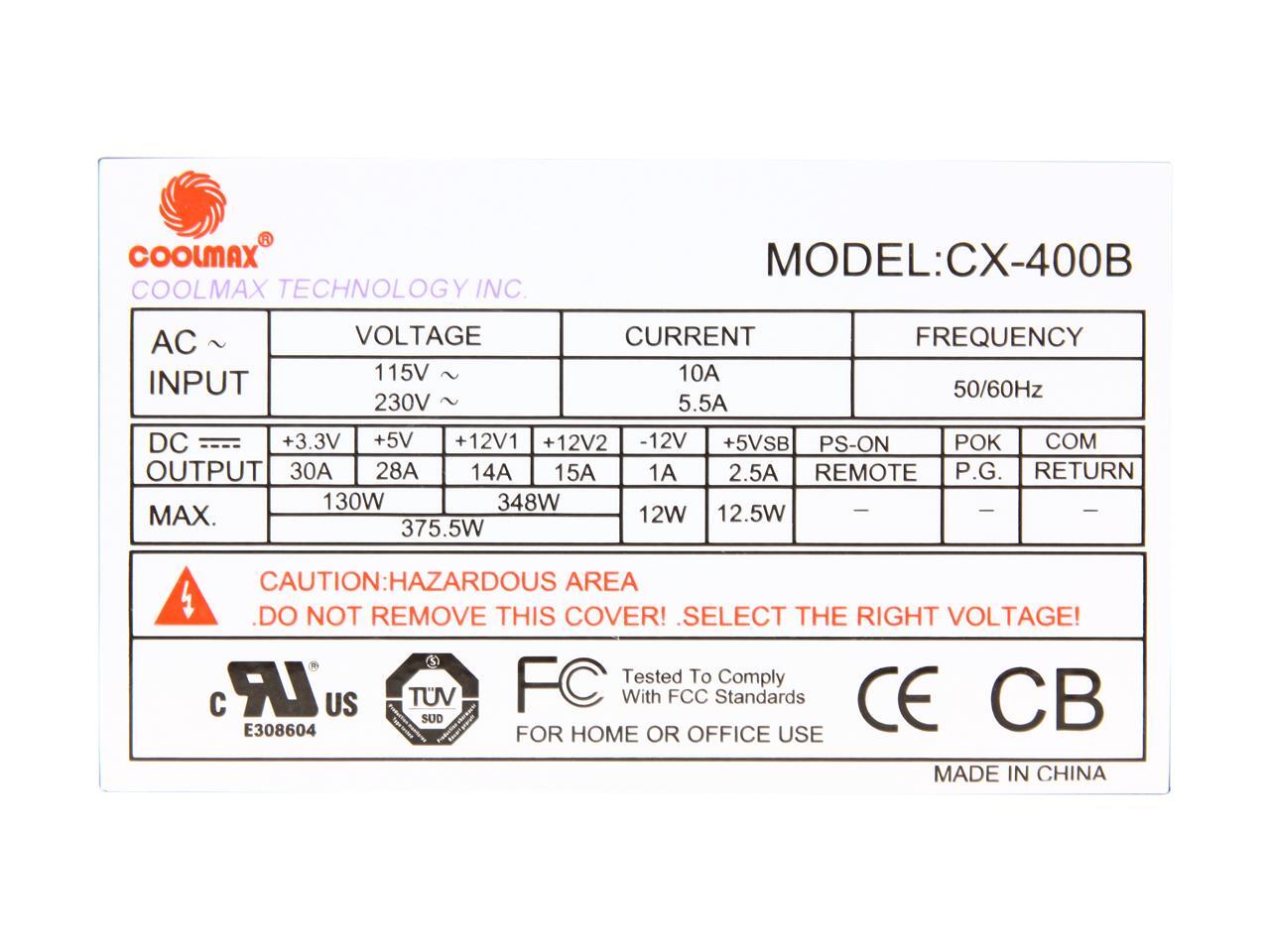 COOLMAX CX-400B 400 W ATX v2.01 Power Supply