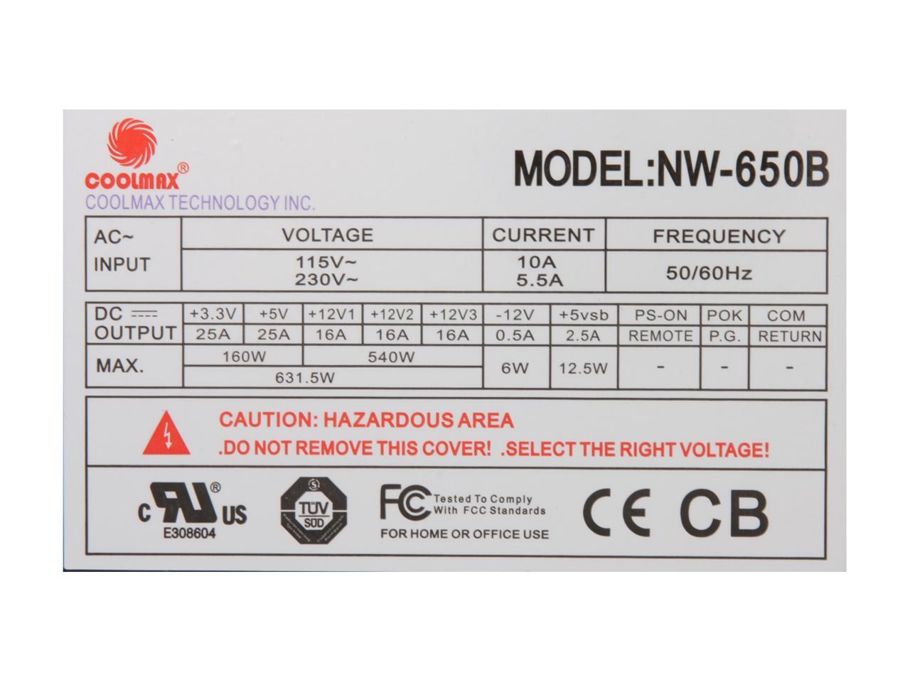 COOLMAX NW-650B 650W ATX12V v2.2 SLI Ready / CrossFire Ready and Compatible with Core i3/i5/i7 Power Supply