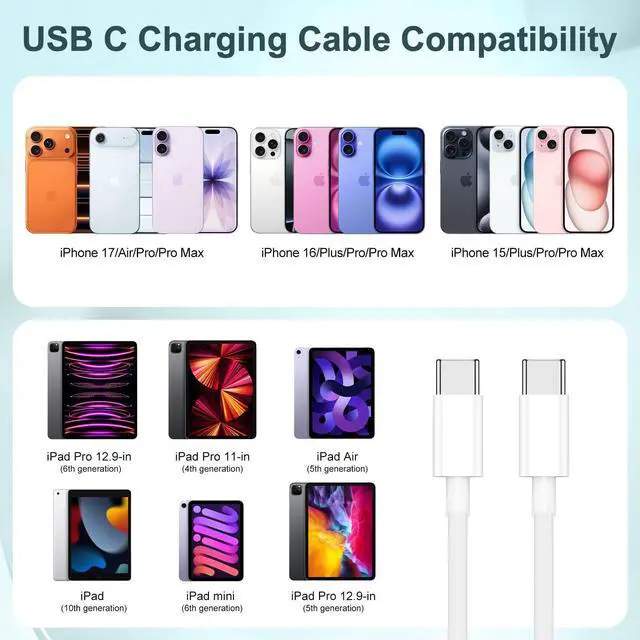 The 10 foot charger usb c suit with USB-C adapters. And 10ft type c charging cable can improve iPhone 15 16 17 series charging efficiency and save time.