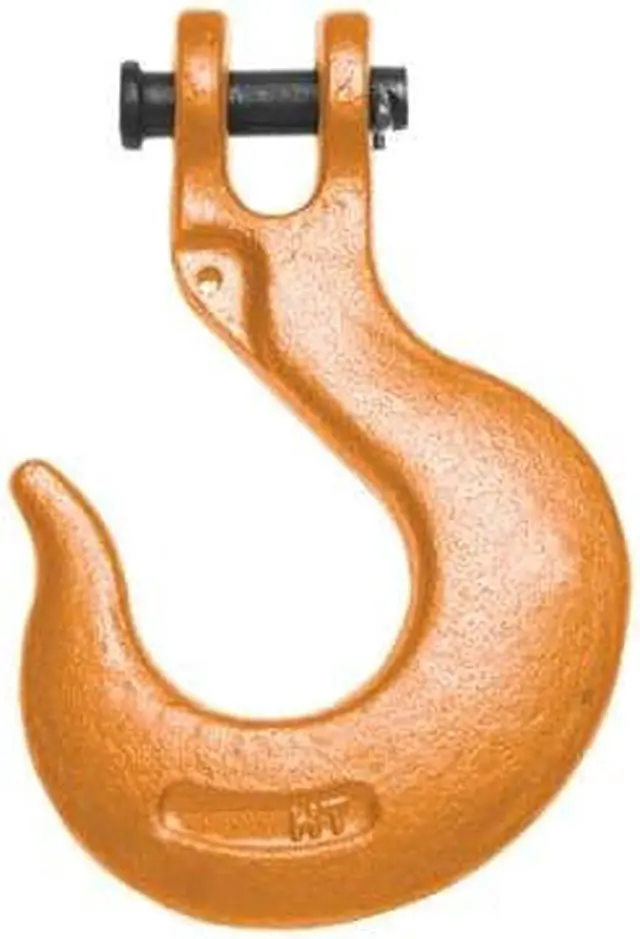 Slip Hook, Material Alloy Steel, Grade 80, Hook Attachment Type Clevis, Trade Size 1/2 in, Working Load Limit 13, 000 lb, Hook Opening 1 3/4 in, Hook Reach Length 4 3/32 in, Clevis Pin Diameter 9/16 in, Clevis Inside Width 5/8 in, Orange, Finish Powder Coated, For Use With Grade 70 or 80 Chain. This item has been restricted from sale in the following state (s): []