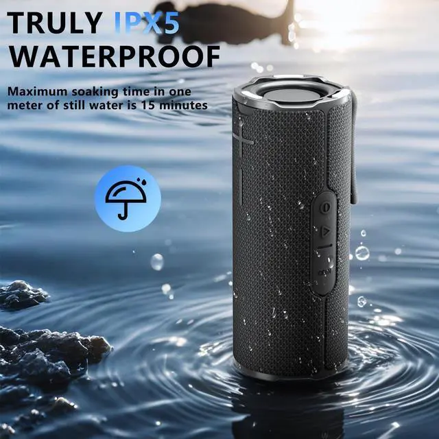 IPX5 Waterproof Bluetooth Speaker This Portable Wireless Speaker Adopt IPX5 Design, well protection safeguards against rain, dust, snow, and spills, you can enjoy music in the swimming pool, beach, bathroom, and other places.It is also anti-shock and anti-damage.