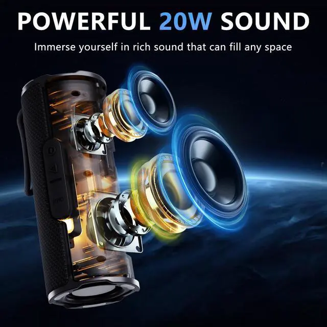 HD Stereo Sound Quality This portable bluetooth speaker is precision designed with advanced audio technology and high-quality speaker units to deliver excellent sound performance and clear music details. You can also connect two speakers at the same time to experience immersive 360° stereo sound.
