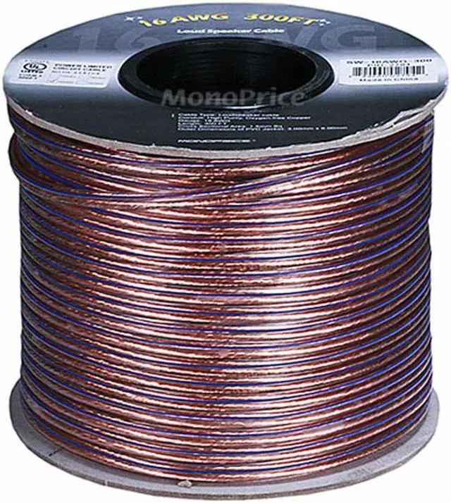Get the most out of your home audio system with high quality, oxygen-free, pure bare copper speaker wire from Monoprice! This speaker wire features two conductors made of high purity (greater than 99.95 Percent pure), oxygen-free bare copper. Pure Bare Copper is a superior conductor to the copper clad aluminum (CCA) conductors used in most other inexpensive speaker wire. CCA is only about 68 Percent as conductive as pure bare copper. This additional resistance is added to the impedance of your speakers and can negatively effect the sound. For the wire to have no audible effect, the total wire resistance should be no more than 5 Percent of the lowest impedance of your speakers.
