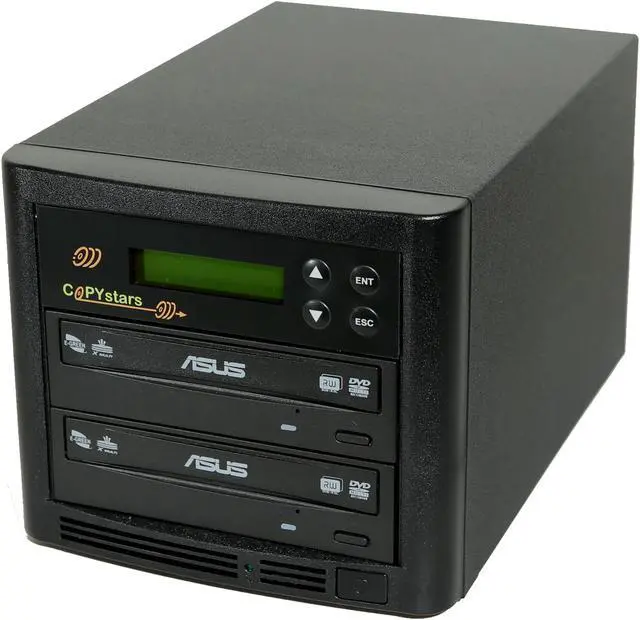 DVD duplicator copy one master disc to one blank discs. Standalone Copystars DVD/CD Duplicator Series includes all the professional CD and DVD burners features in a user-friendly package. Built with durability yet economically priced, Copystars offers high speed performance and cutting edge technologies such as intelligent Hard drive Partitioning and Master Error Proof to enhance even the most demanding jobs.