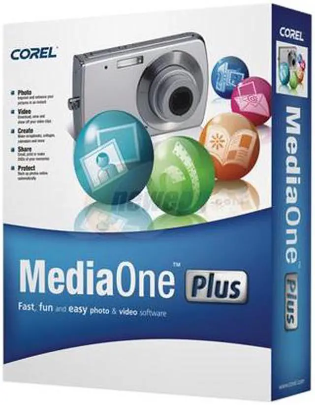| Feature | From enhancing and organizing photos and video clips to creating multimedia slide shows and scrapbooks, Corel MediaOne Plus has it all! There's even automatic, online backup of all your photos and videos, so all your precious memories are safe. Digital camera users looking for a fun and easy way to make the most of their photos and video clips need look no further than Corel MediaOne Plus! |