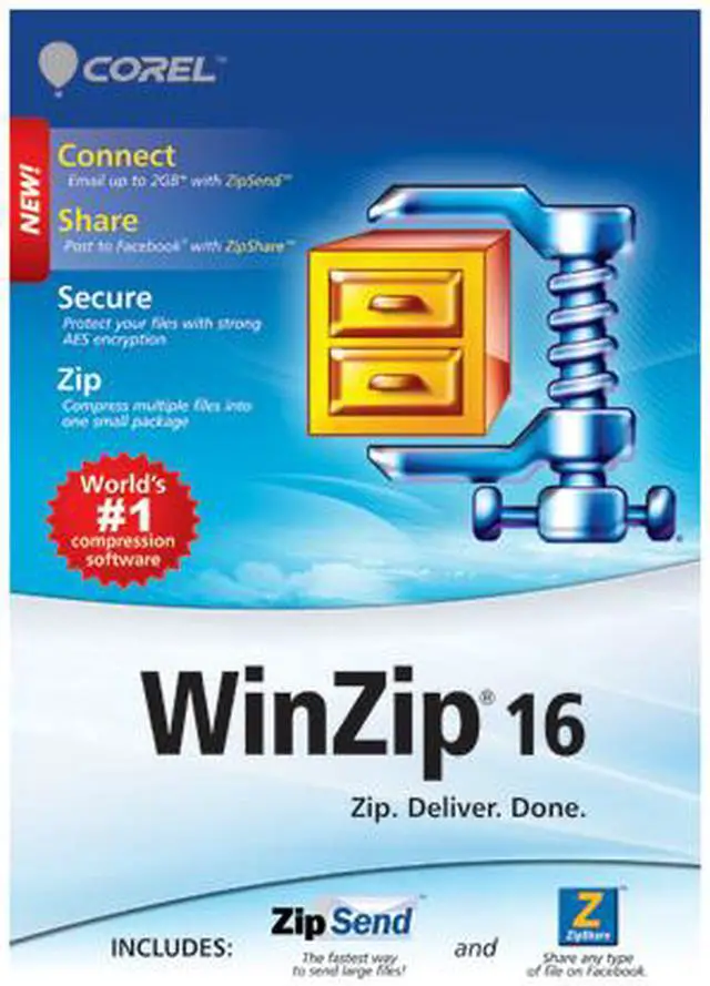 WinZip® is the world's most popular zip utility with 20+ years of experience as leader in the file compression industry. WinZip's powerful zip engine instantly compresses files into small, logical packages that are ideal for sharing and storage. Working with sensitive material? WinZip's AES encryption tool will password-protect your files as you zip them. WinZip also offers several innovative file sharing solutions to help you send large files without clogging email systems. You can even post zipped files directly to Facebook!