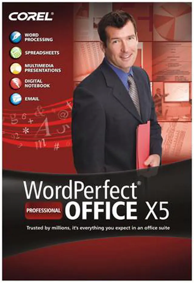 | Feature | Corel WordPerfect Office X5 – Professional Edition is the most powerful version of the office suite, delivering software for word processing, spreadsheets, presentations, database management, email and a host of professional tools. Boost performance and work more collaboratively with new Microsoft Office SharePoint Server support, PDF tools, and enhanced compatibility with Microsoft Office and Windows 7.