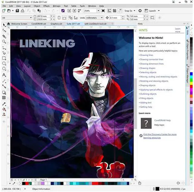 Whether you're a first-time user or an experienced designer, CorelDRAW Graphics Suite 2017 makes it easy to get started. Learn the basics, see what's new with a Startup tour, or transition to the suite with a special tour designed just for Adobe users. Be productive immediately with a workspace that matches your workflow needs, and benefit from high-quality content and versatile in-product learning.