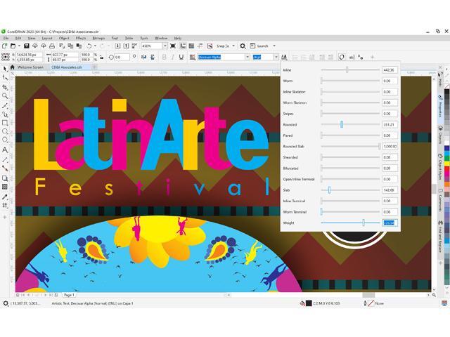 - Add effects to text like block shadows and contours, fine-tune fonts responsively, fit text to paths, and more, with a complete set of typography tools.