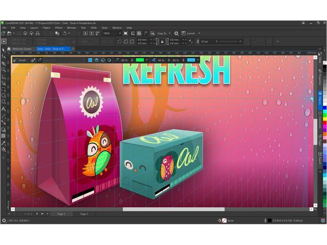 - Design complex works of art, add creative effects, and lay out brochures, multi-page documents, and more with an expansive toolbox
