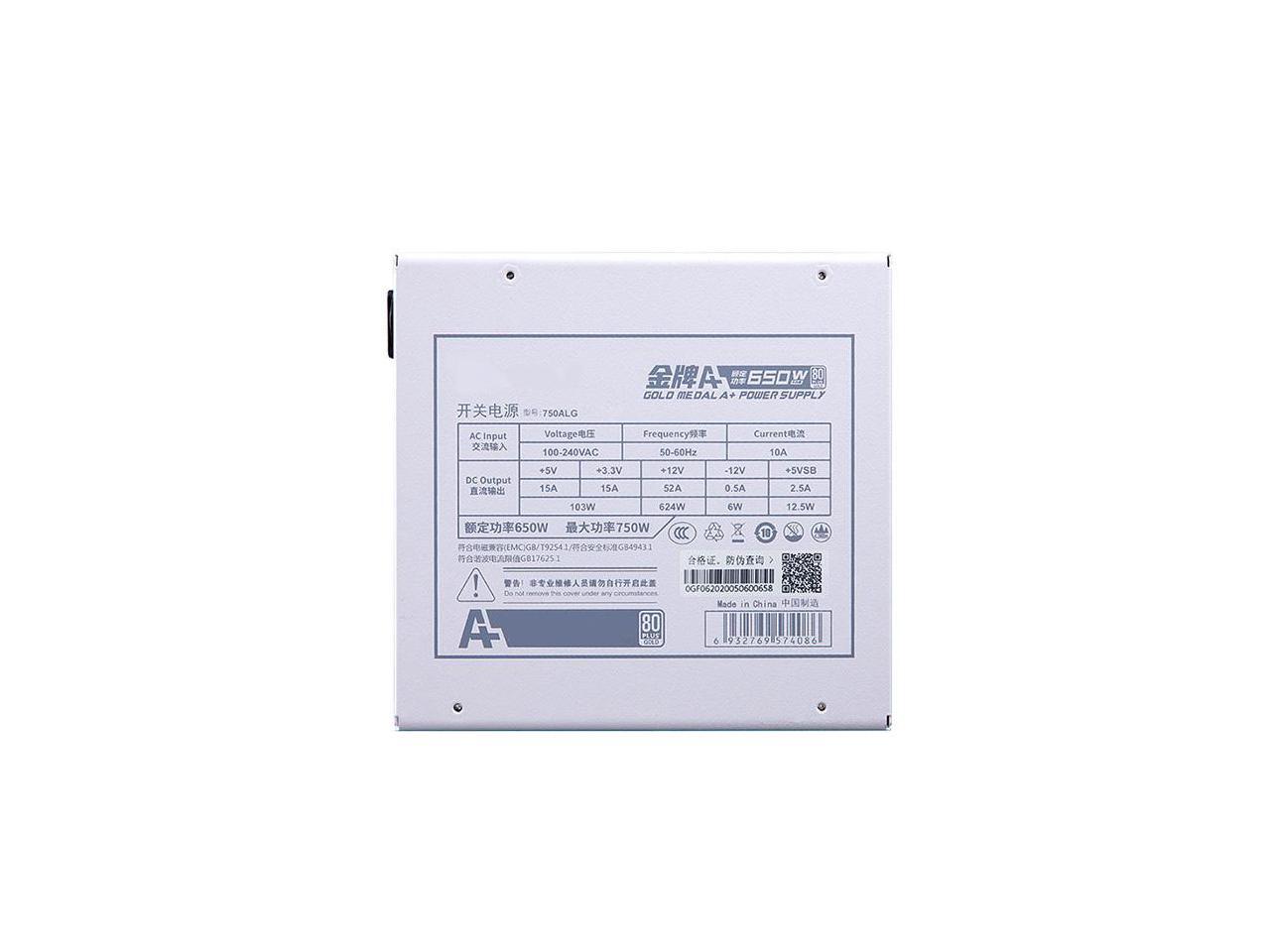 Corn Gold Medal A+650W,650W Fully Modular Power Supply,80Plus Gold Medal Certification,Ultra -Quiet Fluid Dynamic Bearing Fan,Automatic Speed Control-White