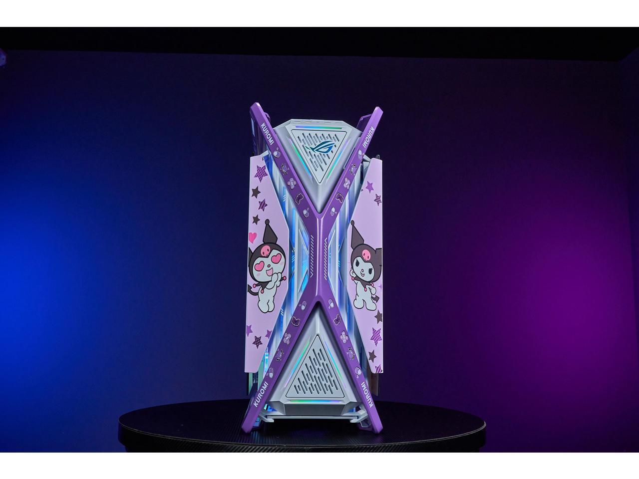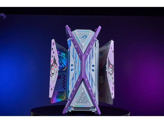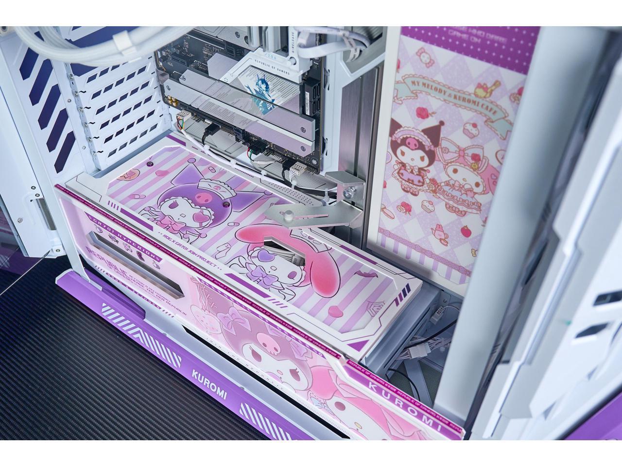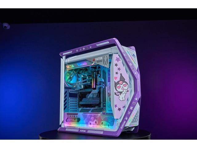 CORN GR701 E-ATX computer case, 420 mm dual radiator support, four 140 mm fans, metal GPU holder, component storage, ARGB fan hub, 60W fast charging Kuromi-White