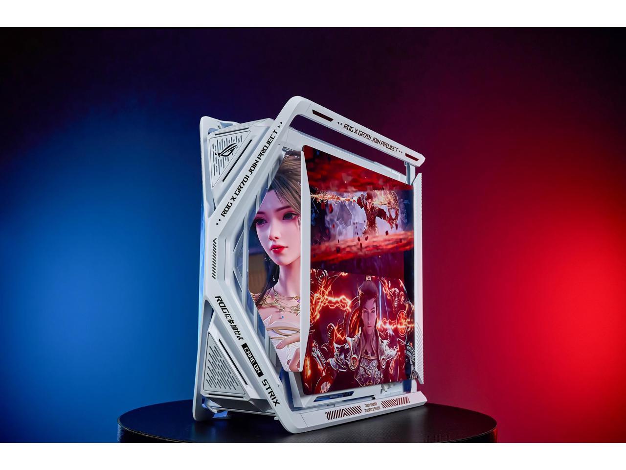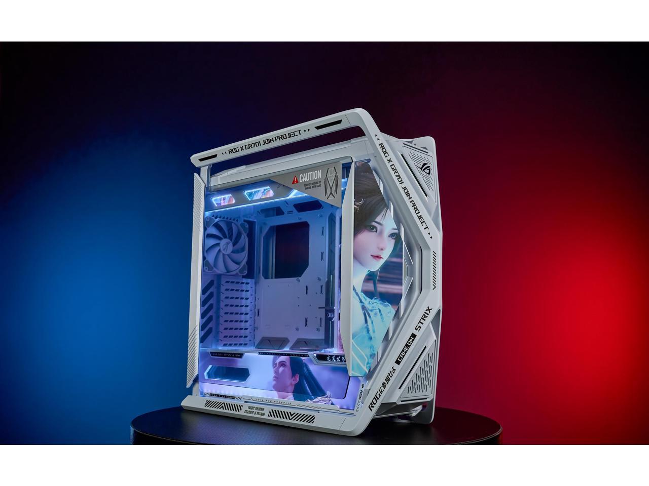 CORN GR701 E-ATX computer case, 420 mm dual radiator support, four 140 mm fans, metal GPU holder, component storage, ARGB fan hub, 60W fast charging-Perfect World(White)
