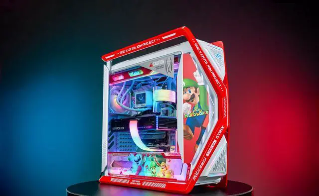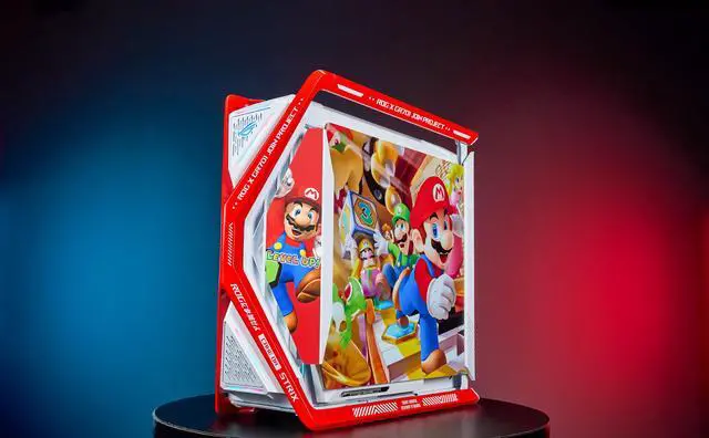 Corn Electronics GR701 E-ATX computer case, 420 mm dual radiator support, four 140 mm fans, metal GPU holder, component storage, ARGB fan hub, 60W fast charging Mario(Red)