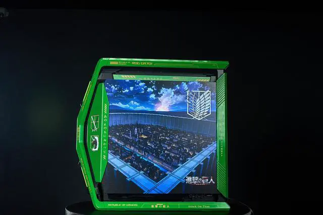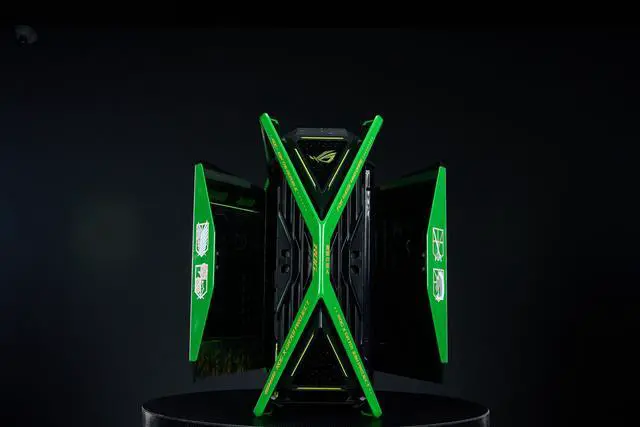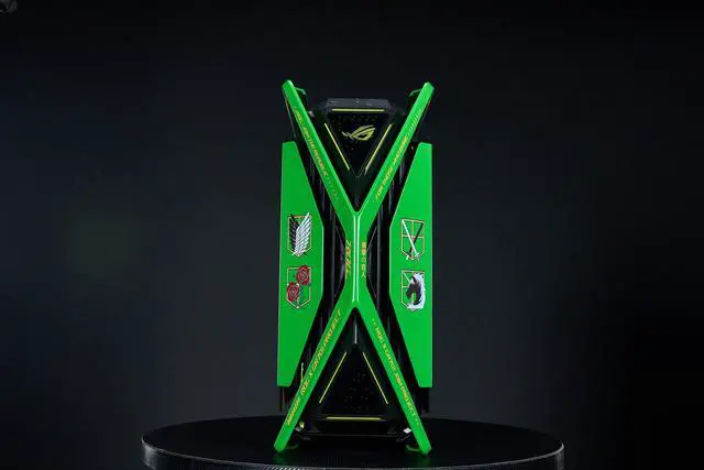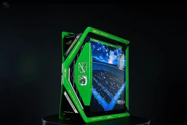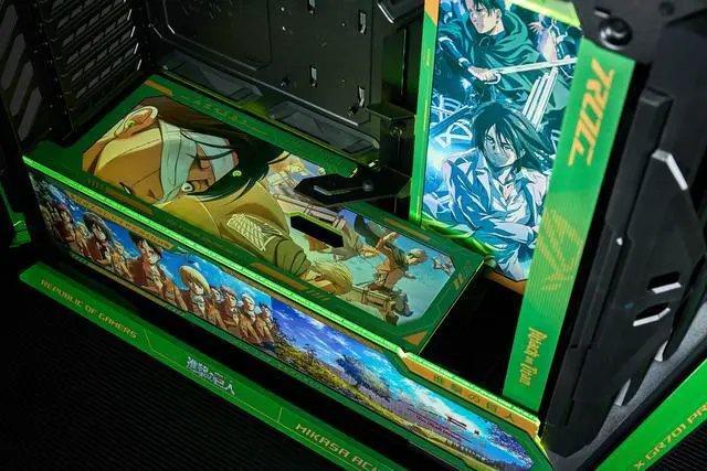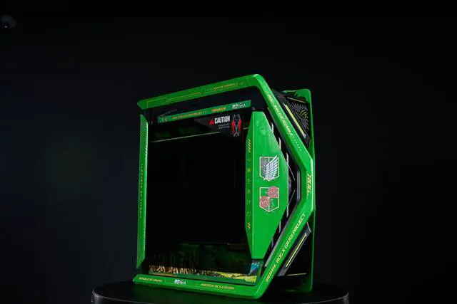 CORN GR701 E-ATX computer case, 420 mm dual radiator support, four 140 mm fans, metal GPU holder, component storage, ARGB fan hub, 60W fast charging Attack on titan-Green