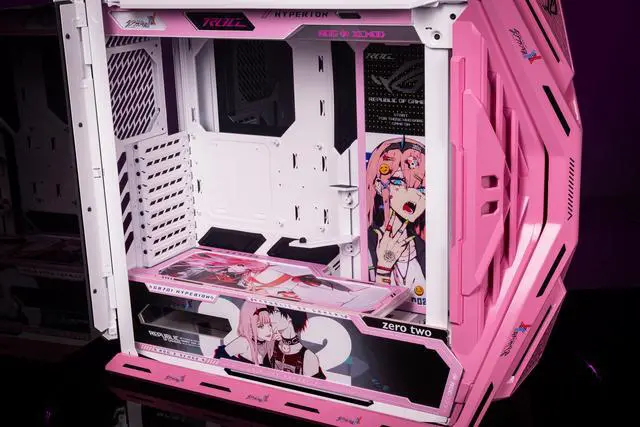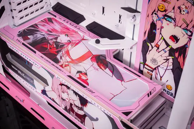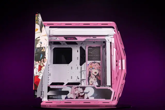 Corn Electronics GR701 E-ATX computer case, 420 mm dual radiator support, four 140 mm fans, metal GPU holder, component storage, ARGB fan hub, 60W fast charging-DARLING in the FRANXX 02(Pink)